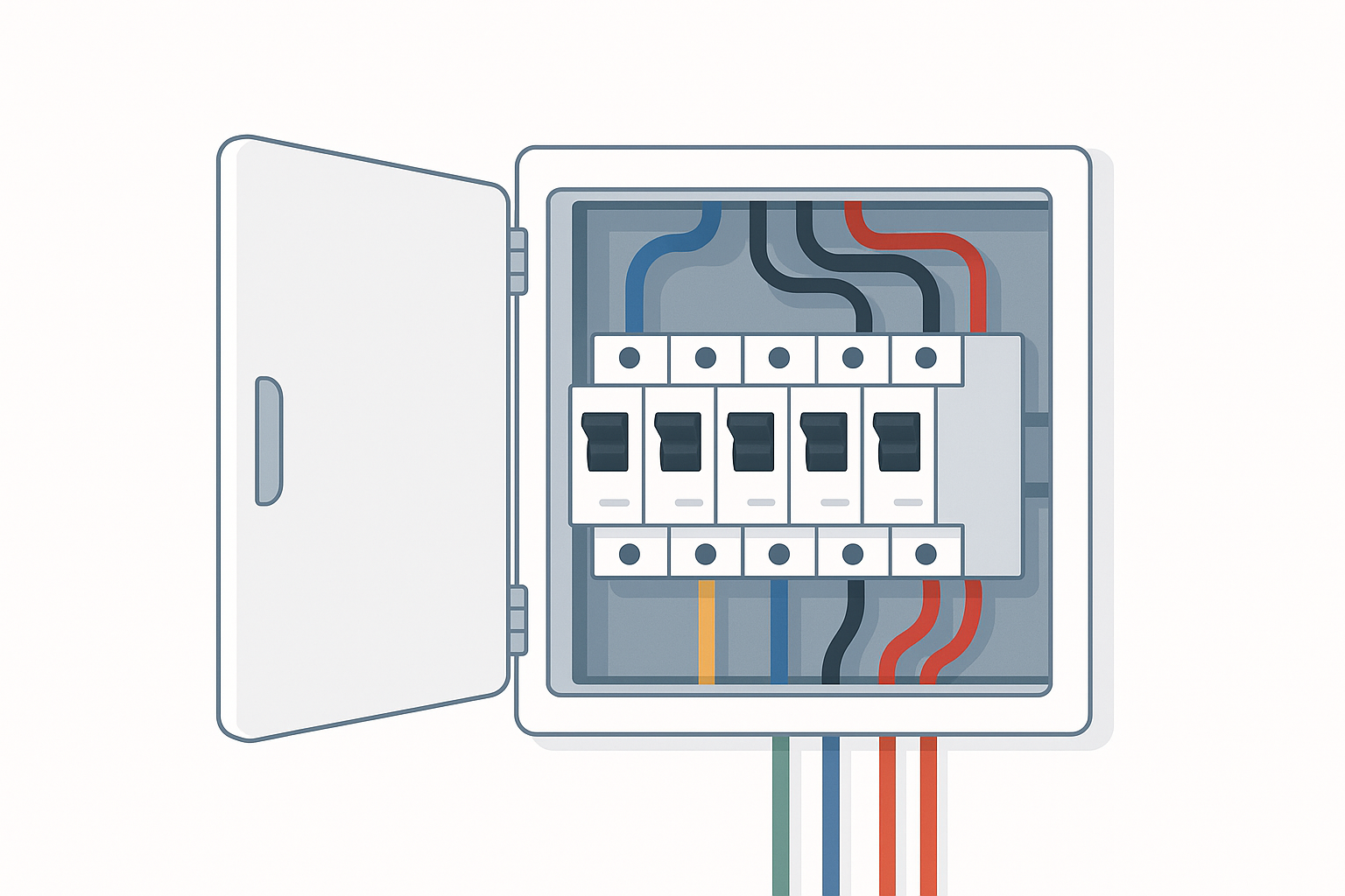 – Áramvédő kapcsolók (FI-relé), biztosítékok telepítése
